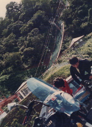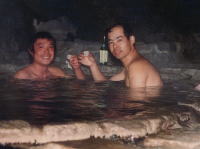R41を走り、白川で大正河原キャンプ場へ。加子母村辺りから濁河へ入るも悪路で立ち往生してUターン。またまたR41に戻り小坂町から温泉へ到着。泊まりは朝日荘、旅館御岳の露天風呂は崖の横っ腹にトンネルを掘ってあり、40bほど下ると黄金色の露天風呂があった。横を豪快に川がながれていたっけ。