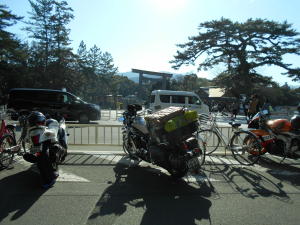 午前10時30分、伊勢神宮内宮着。四輪は伊勢西ICを降りた所から並んでいたが二輪車は内宮の橋前のローターリーへスイスイ、バスとタクシーのレーンを通りました。