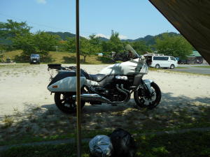 | グルリと散策して私達のサイトへ戻り途中だっった後片付けにかかります。日差しは強いものの木陰で助かりました。管理棟前に愛馬を停めて利用券を返納し挨拶して午前10時、ささゆりの湯キャンプ場を後にしました。 今日の予定はモーニングをしながら話し合った恵那へと向かい道の駅らっせいみさとで蕎麦で昼食です。さぁ~行きましょう! |