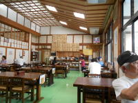 午前10時50分、道の駅そばの郷らっせいみさとに到着。二輪車置き場は斜めに仕切られて停めやすい。建物は木造建築で雰囲気は良い。店内も落ち着いていて時間が早いのかまだ空いていた。 |