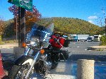 余りに早くキャンプ場へ着いたので寸又峡でお風呂と昼食のつもりで愛馬を走らせた。 素晴らしい紅葉を見ながら40年近く前の記憶の酷道とは違う広い道を快適に走る。 途中から観光バス数台の後ろに付いたためバス同士のお見合いで時間を食い午後1時30分に寸又峡着。 人混みを「すみませーん」とかき分け一番奥の駐車場へとたどり着く。 後ろの宿は40年近く前に泊まった所で、その前の隙間に停めた。駐車料金200円、係員のおじさん(私と年はそんなに・・・)に「よく来たね」と嬉しい言葉。 |